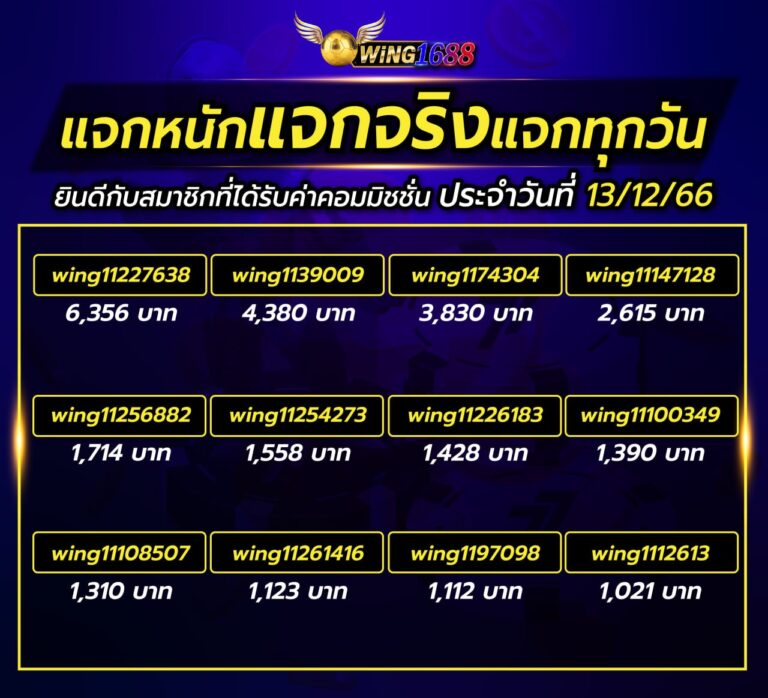 ยินดีกับสมาชิกได้รับค่าคอมมิชชั่นประจำวันที่ 13/12/66
