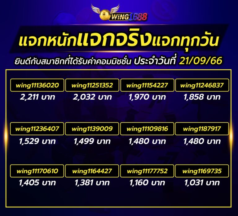 ยินดีกับสมาชิกได้รับค่าคอมมิชชั่นประจำวันที่ 21/09/66