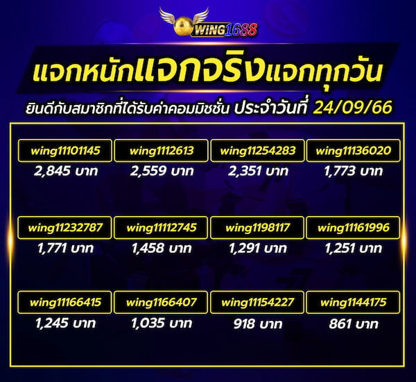 ยินดีกับสมาชิกได้รับค่าคอมมิชชั่นประจำวันที่ 24/09/66