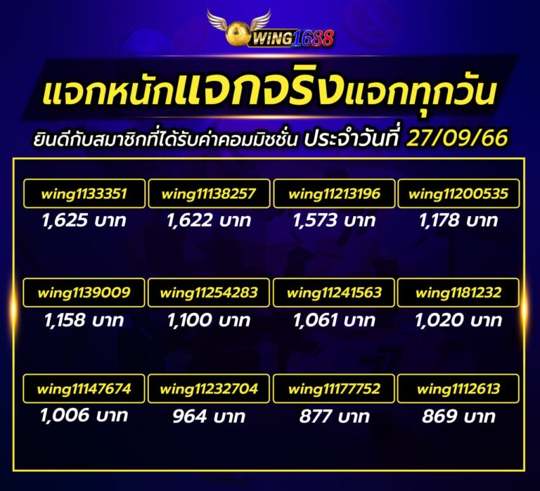 ยินดีกับสมาชิกได้รับค่าคอมมิชชั่นประจำวันที่ 27/09/66